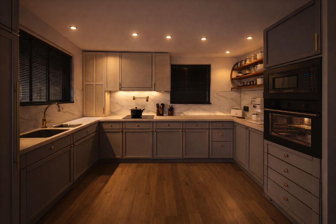 Chaque décision a été pensée dans une vision d’ensemble : pièce de vie, cuisine, espaces privés et suite parentale s’inscrivent dans une continuité architecturale, sans rupture ni effet décoratif superflu.