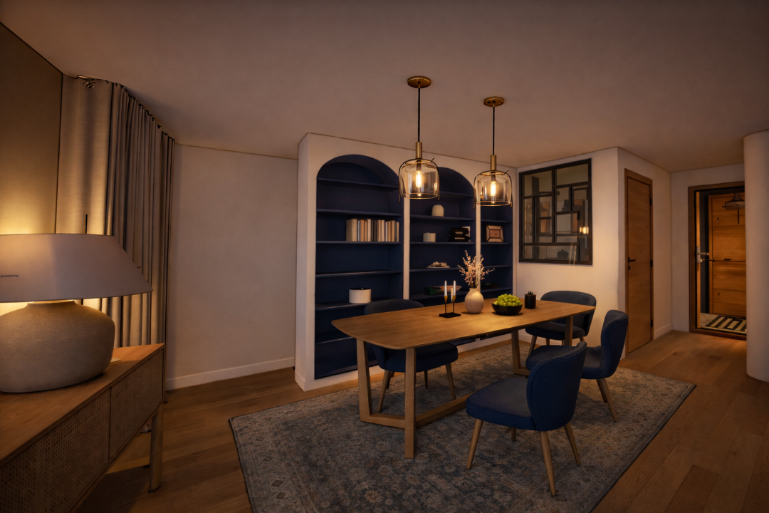 L’objectif était de transformer un intérieur cloisonné en un lieu fluide, lisible et adapté aux usages du quotidien, tout en apportant une atmosphère chaleureuse et intemporelle.